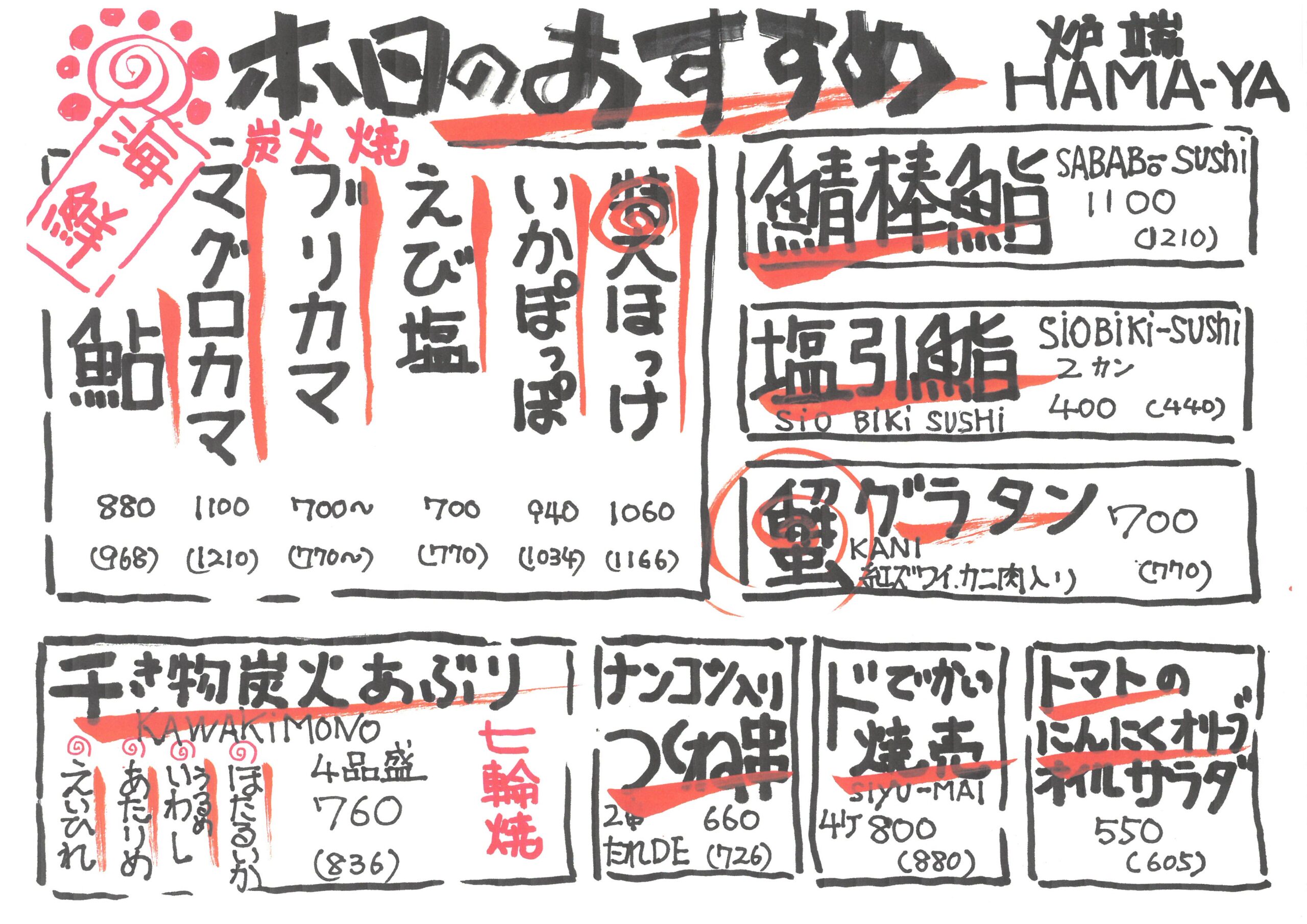 米沢市初!オープンキッチンタイプでの炉端焼きで旬を堪能。 御来店の皆様へはゆっくりと美味しい料理と地酒、和モダンでアットホームな空間も提供いたします。 さぁ!今宵は濱家で・・・ハッピーな時を。 鮨屋さん本来の本物の美味しさを余すことなくお伝えし、食の喜びを感じていただければ幸いです。